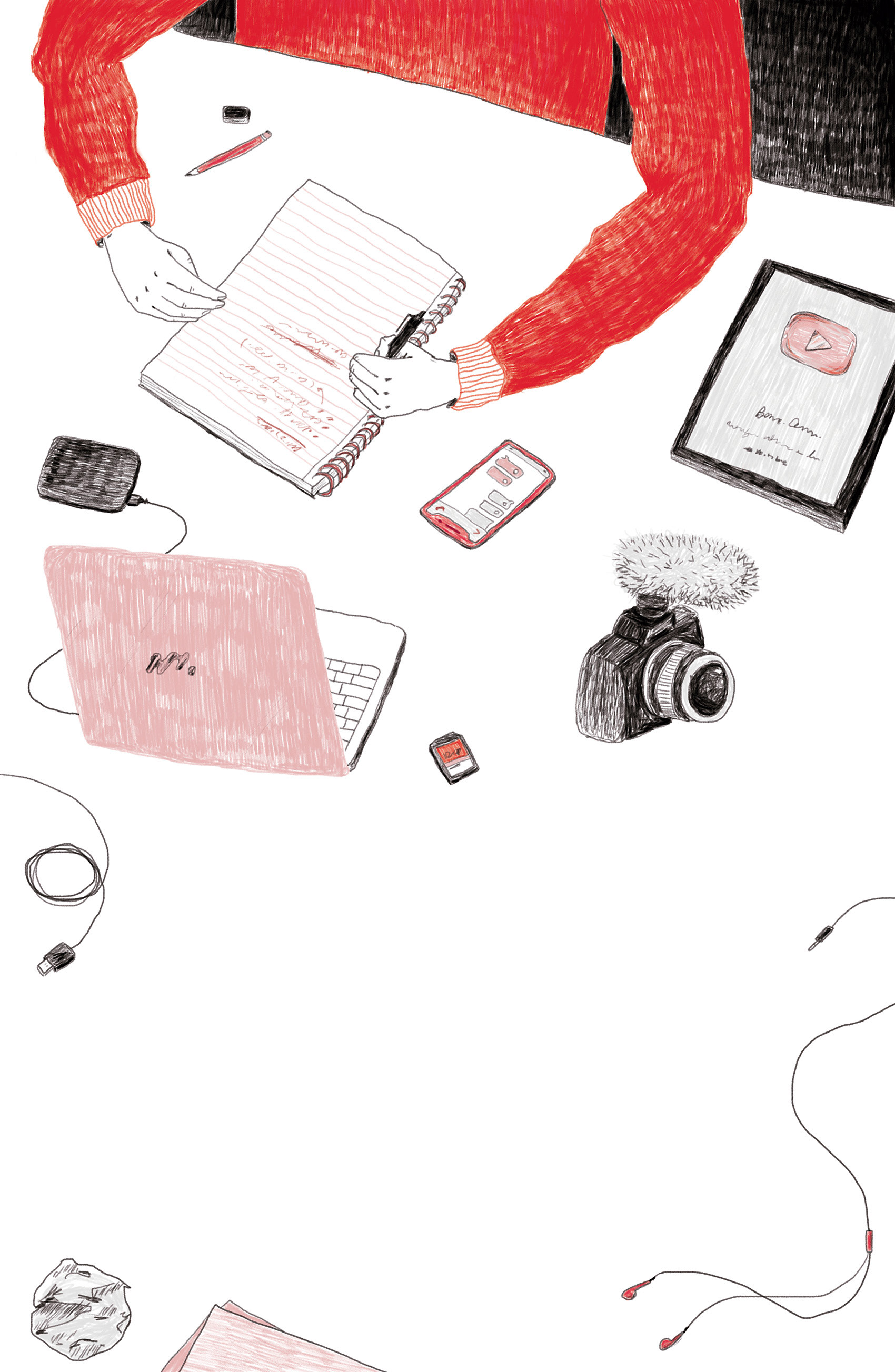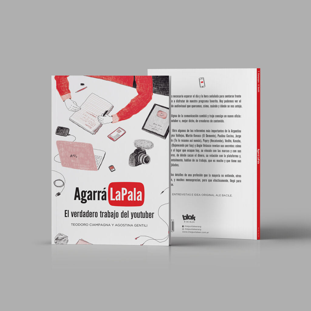 Cover and chapter illustrations for Agarrá la Pala, a book about the work behind making Youtube videos. Published by Penguin Random House in 2020.